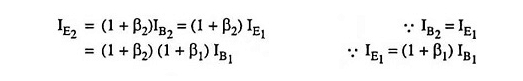 Obviamente, la corriente de emisor del primer transistor se convierte en la corriente base para el segundo transistor.