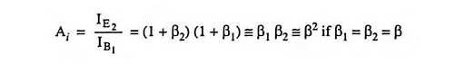 Significa que el amplificador de Darlington se comporta como un solo transistor que tiene una ganancia de corriente igual a β2.