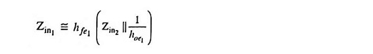 Ya que zin2 = hfe2re, y 1/hoe1 aparecerá en paralelo en el circuito equivalente de señal pequeña, por lo tanto