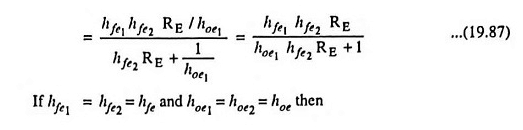 Hemos visto que 1/hoe podría eliminarse en la mayoría de los casos porque la impedancia de carga zl << 1/hoe. Para el circuito amplificador de Darlington, la impedancia de entrada Zin2 está lo suficientemente cerca en magnitud a 1/hoe para requerir considerar los efectos de HOE1.